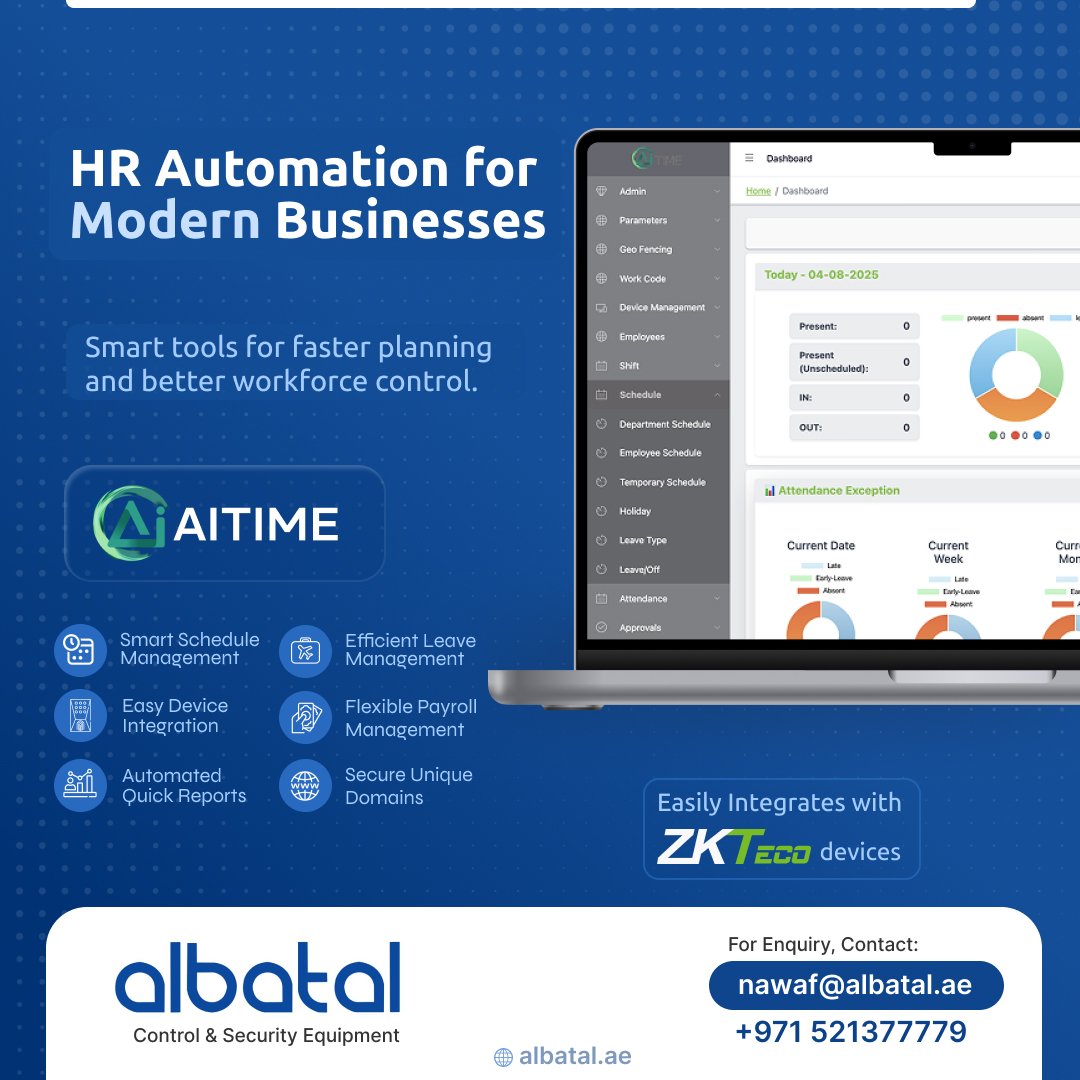 Here are the details you can use for the website page regarding AITIME HR Automation by Albatal Control & Security Equipment, focusing on its features, benefits, and integration capabilities.